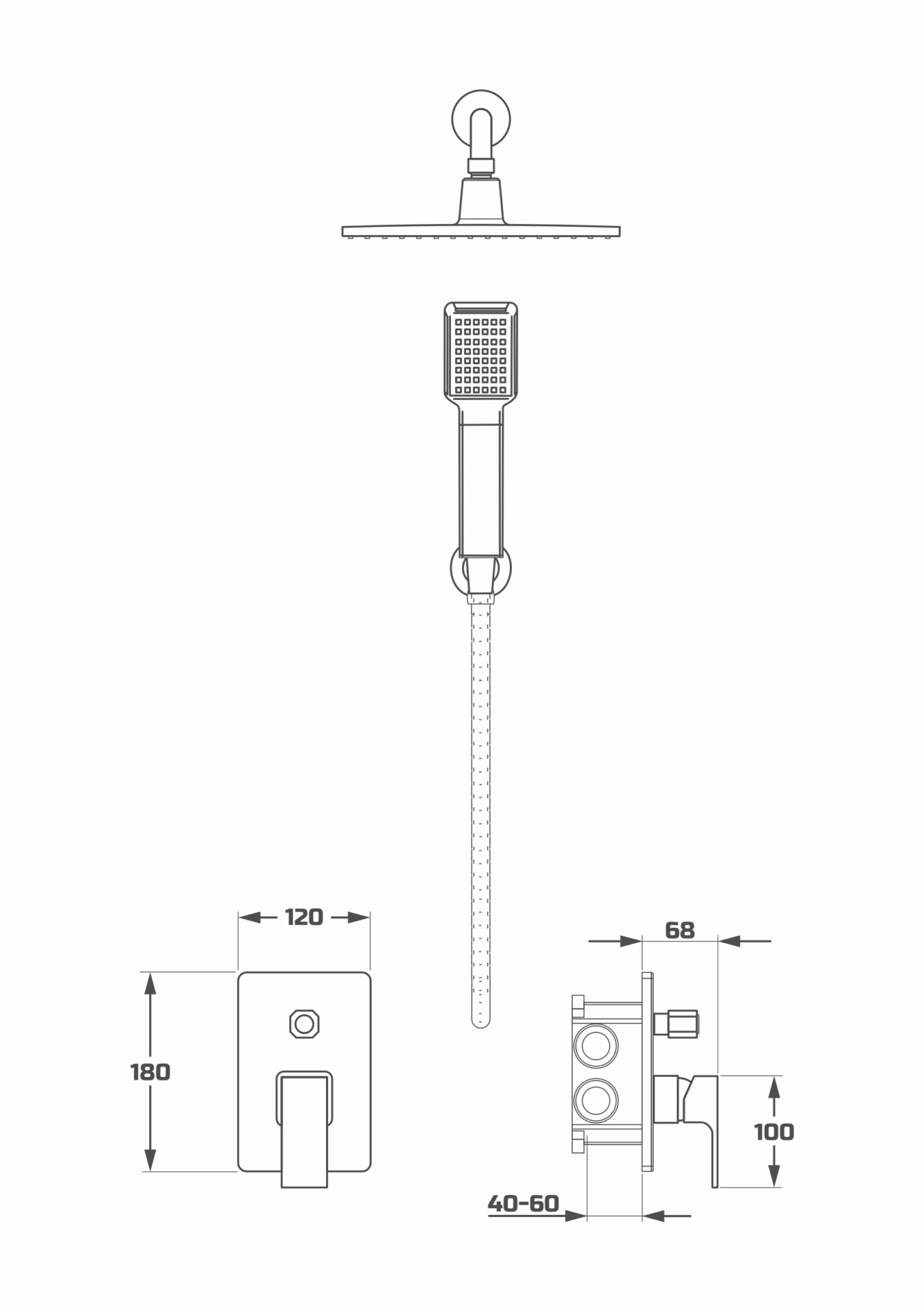 Схема товара Душевая система встраиваемая с лицевой панелью комплект PL7190
