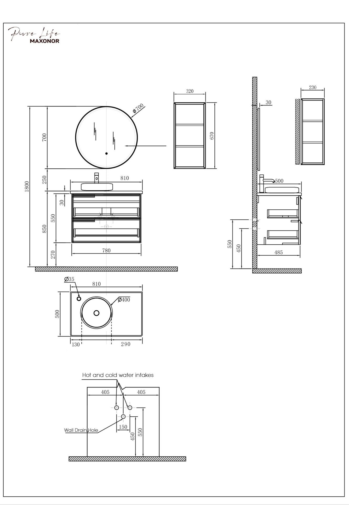 Схема товара Комплект мебели для ванной комнаты AMETHYST-1000-1-grey
