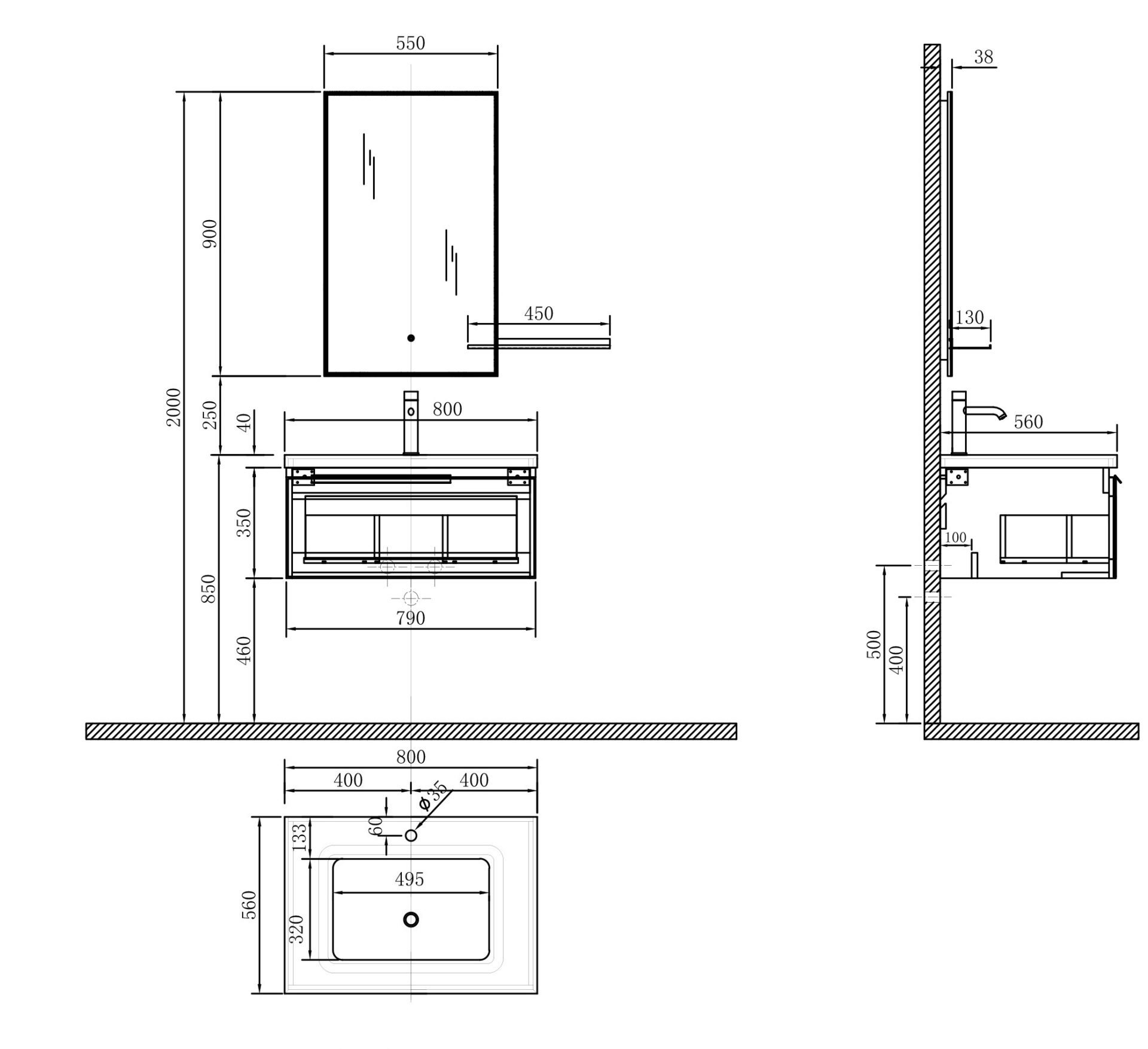Схема товара Комплект мебели для ванной комнаты ESTRELLA-1000