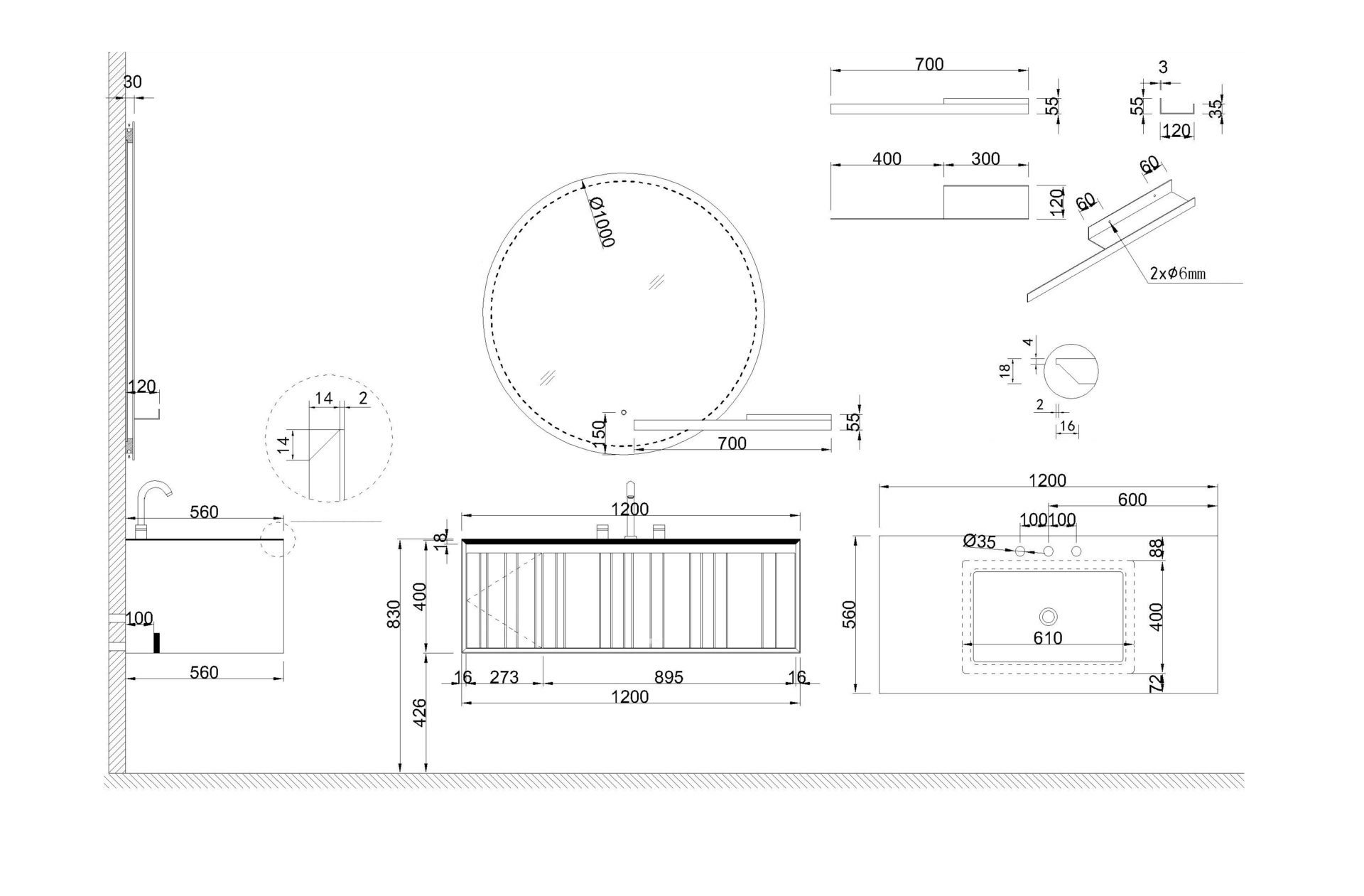 Схема товара Комплект мебели для ванной комнаты PLACER-1200