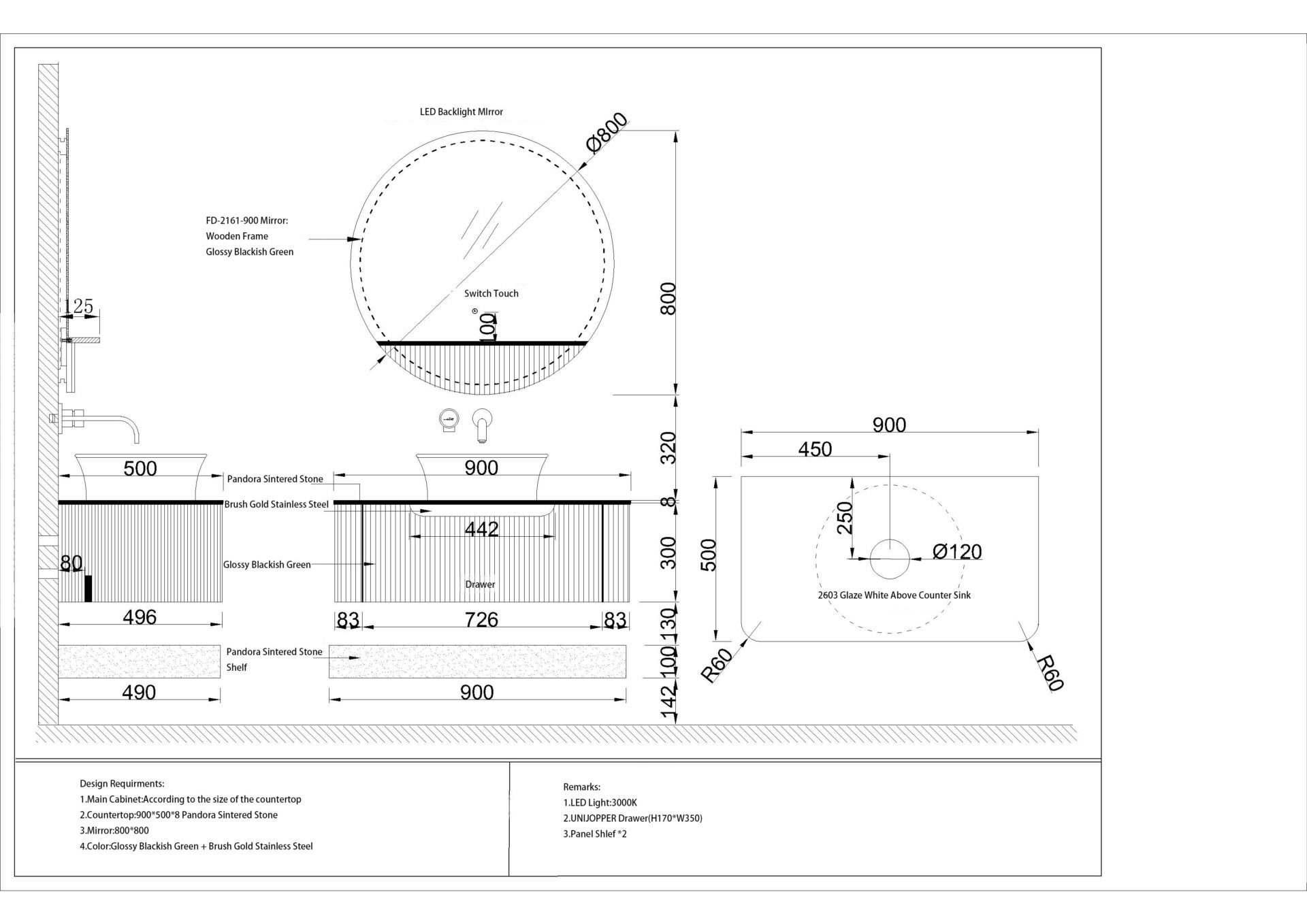Схема товара Комплект мебели для ванной комнаты Tourmaline-900