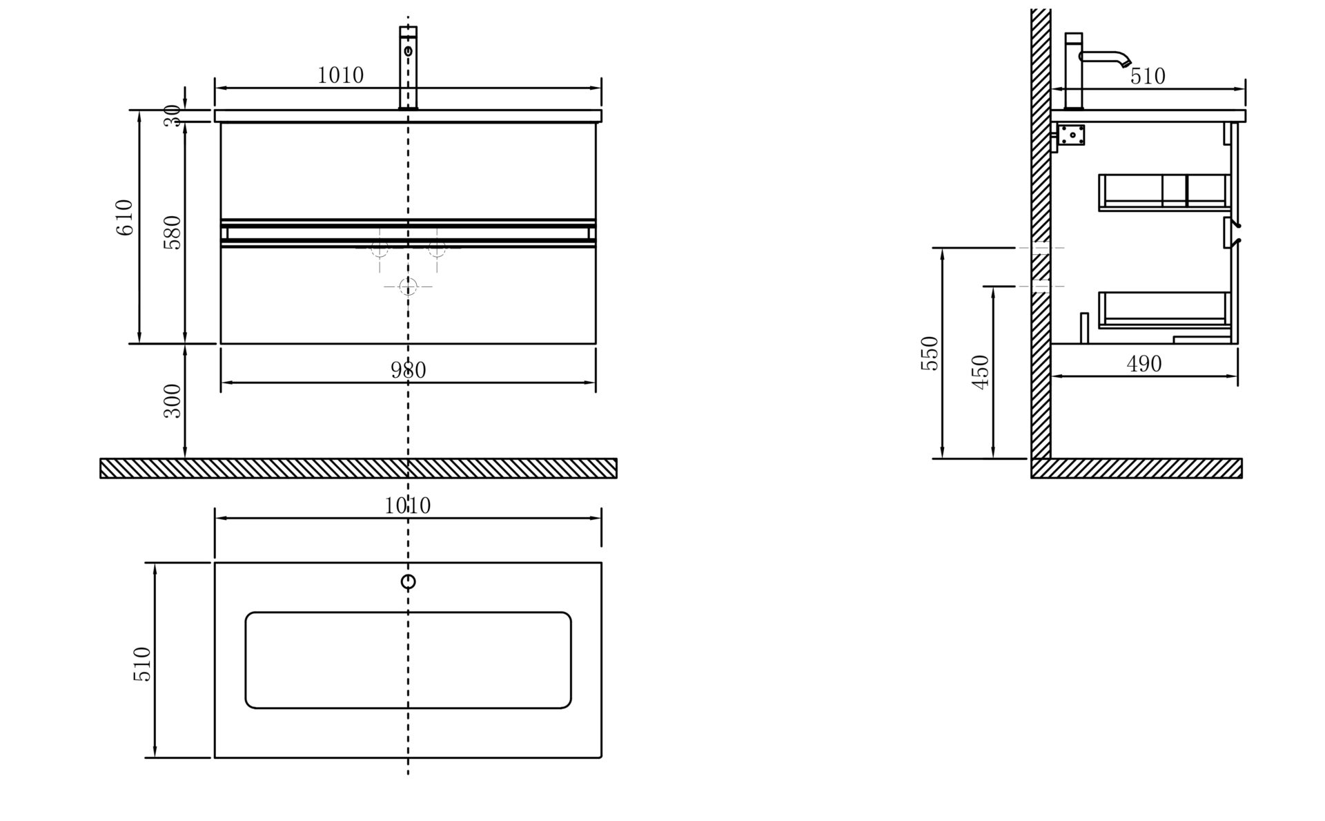 Схема товара Тумба со столешницей Sentimiento-1000-white-b