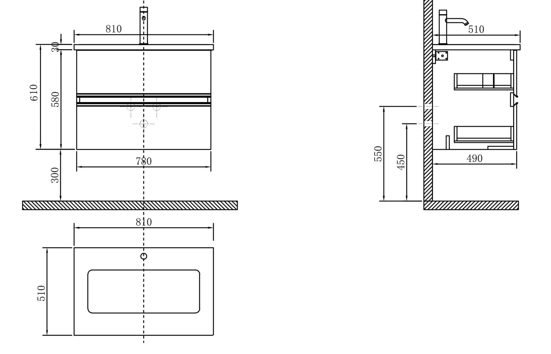 Схема товара Тумба со столешницей Sentimiento-1000-white-b