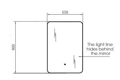 Зеркало в ванную со светодиодной подсветкой с обработанными краями. Сенсорный выключатель, управляется касанием сенсорной кнопки