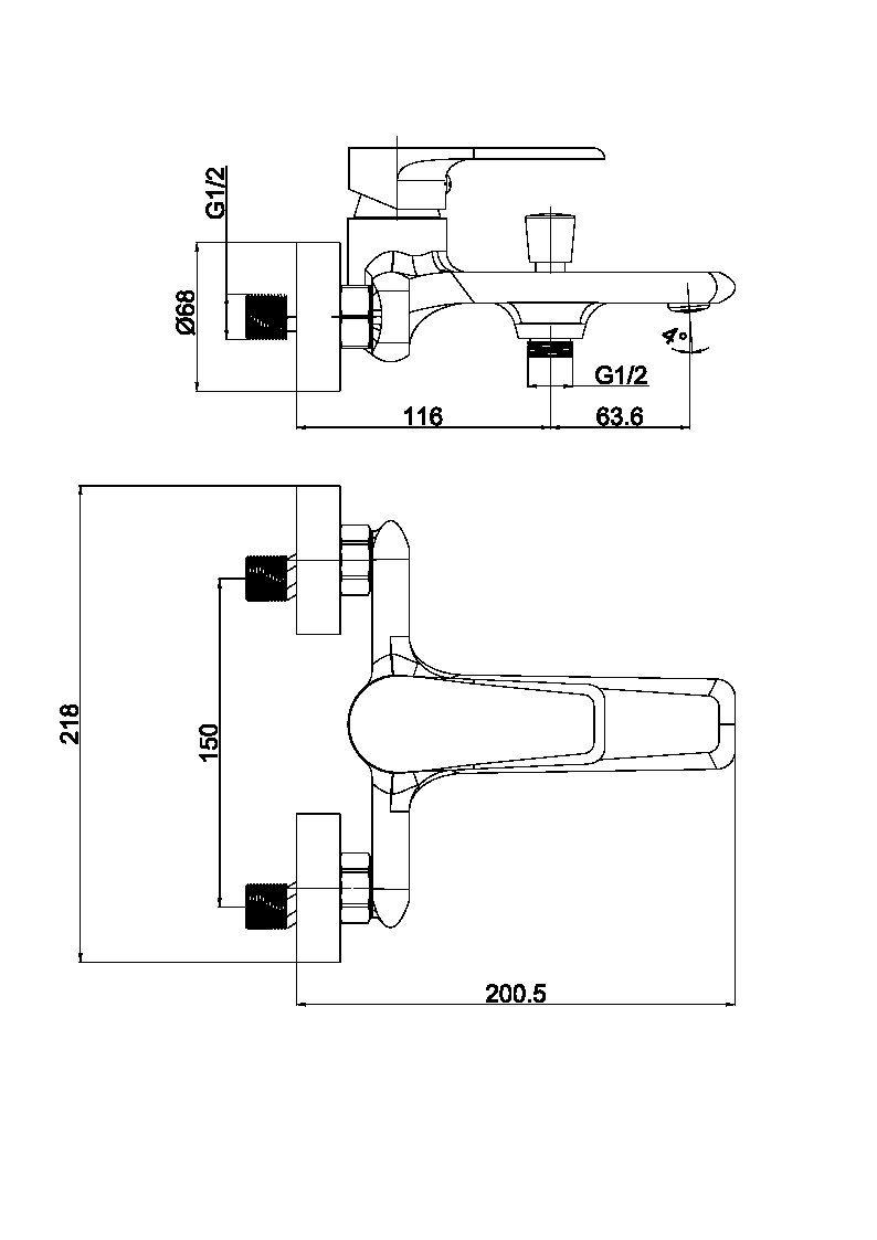 Схема товара Смеситель для ванны PL3291