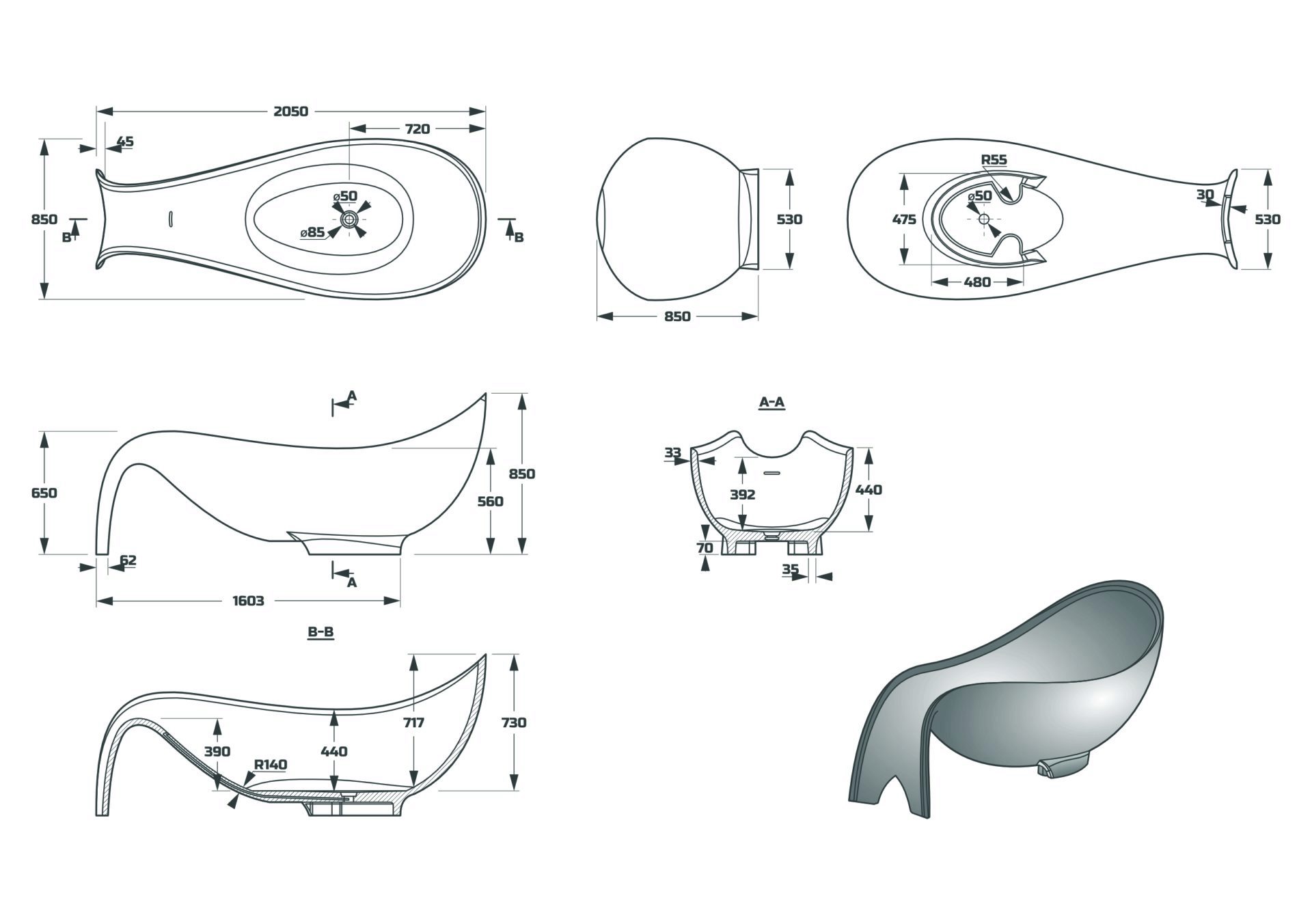 Схема товара Ванна PL-BT2807