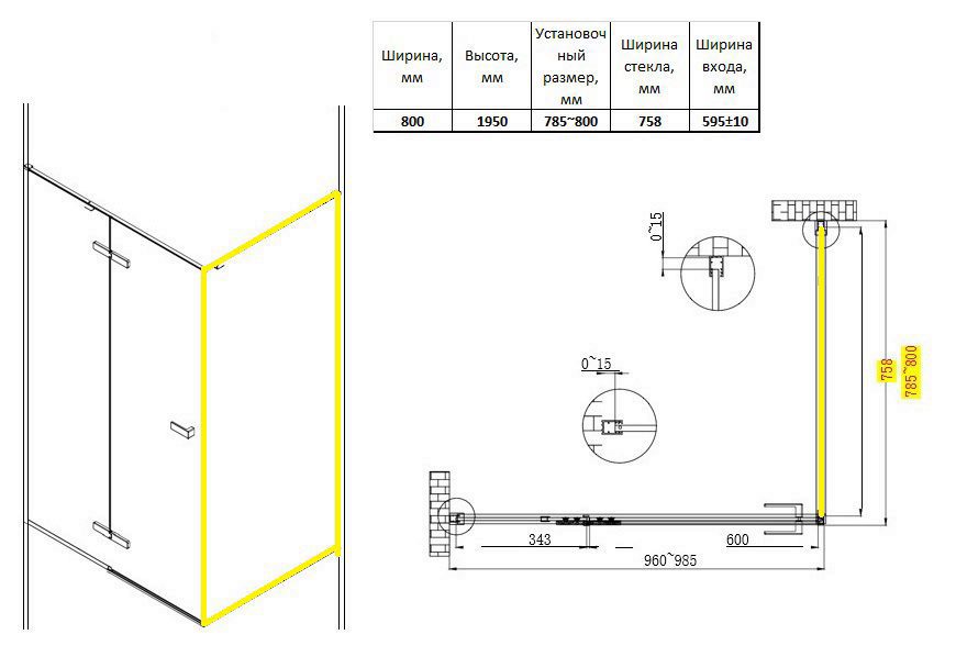 Схема товара Боковая стенка душевого ограждения PL-SE201AFF-9 (100)