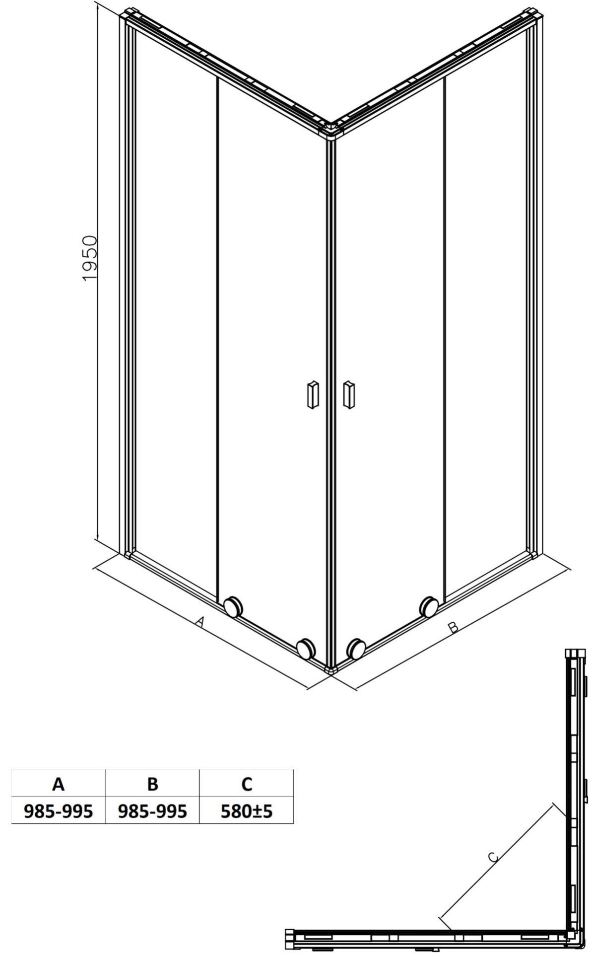 Схема товара Душевой уголок PL-SE401ACL (100х2)