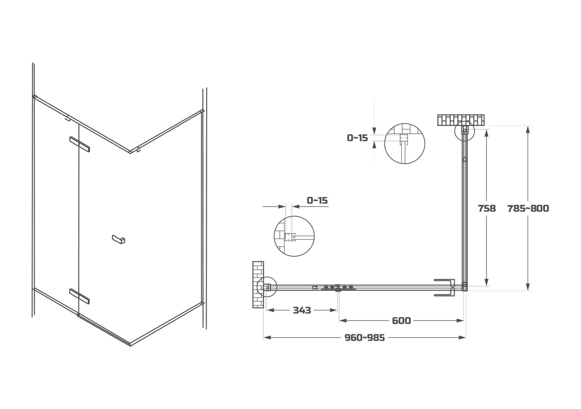 Схема товара Боковая стенка душевого ограждения PL-SE201ACL-6 (90)