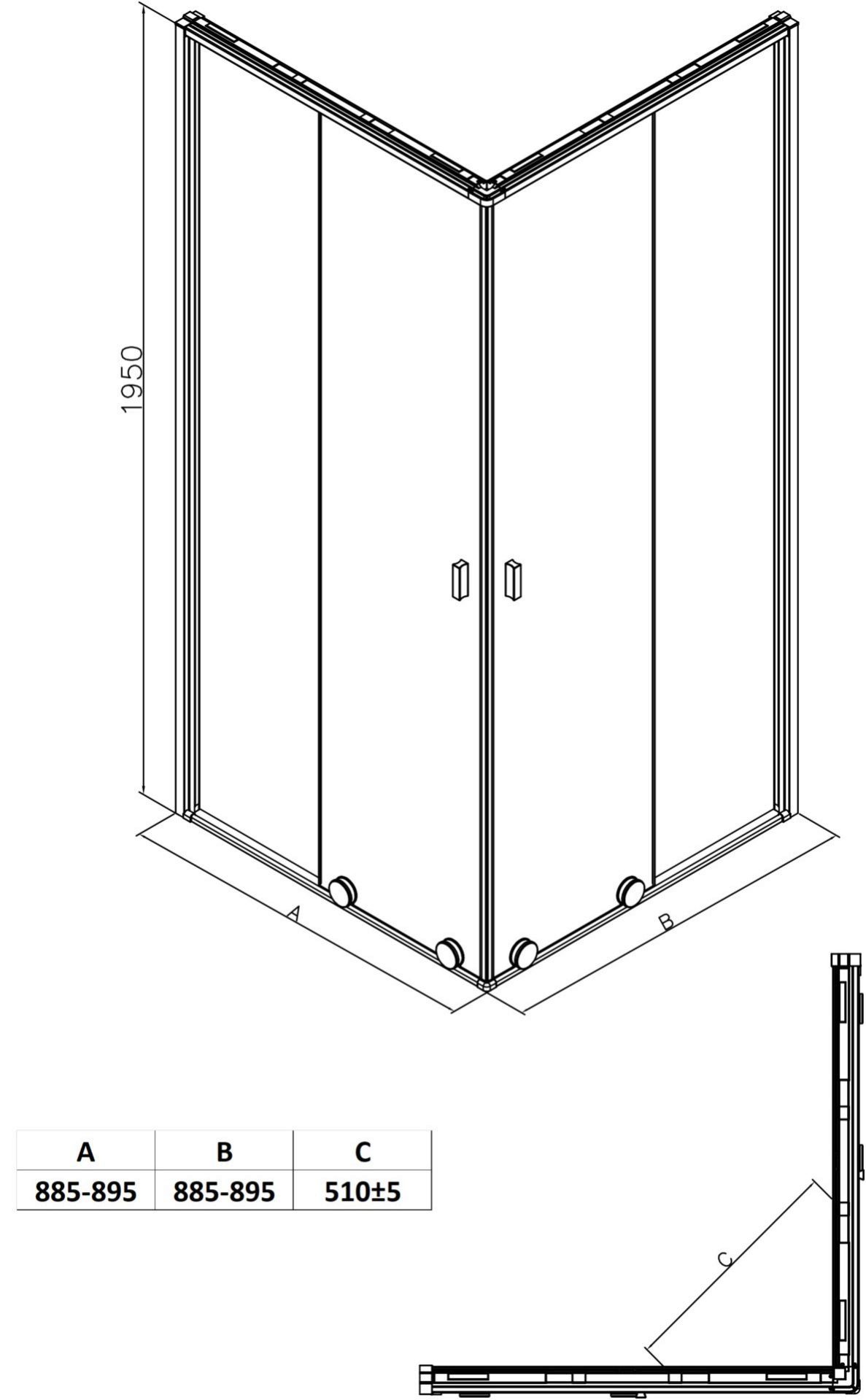 Схема товара Душевой уголок PL-SE401ACL (100х2)