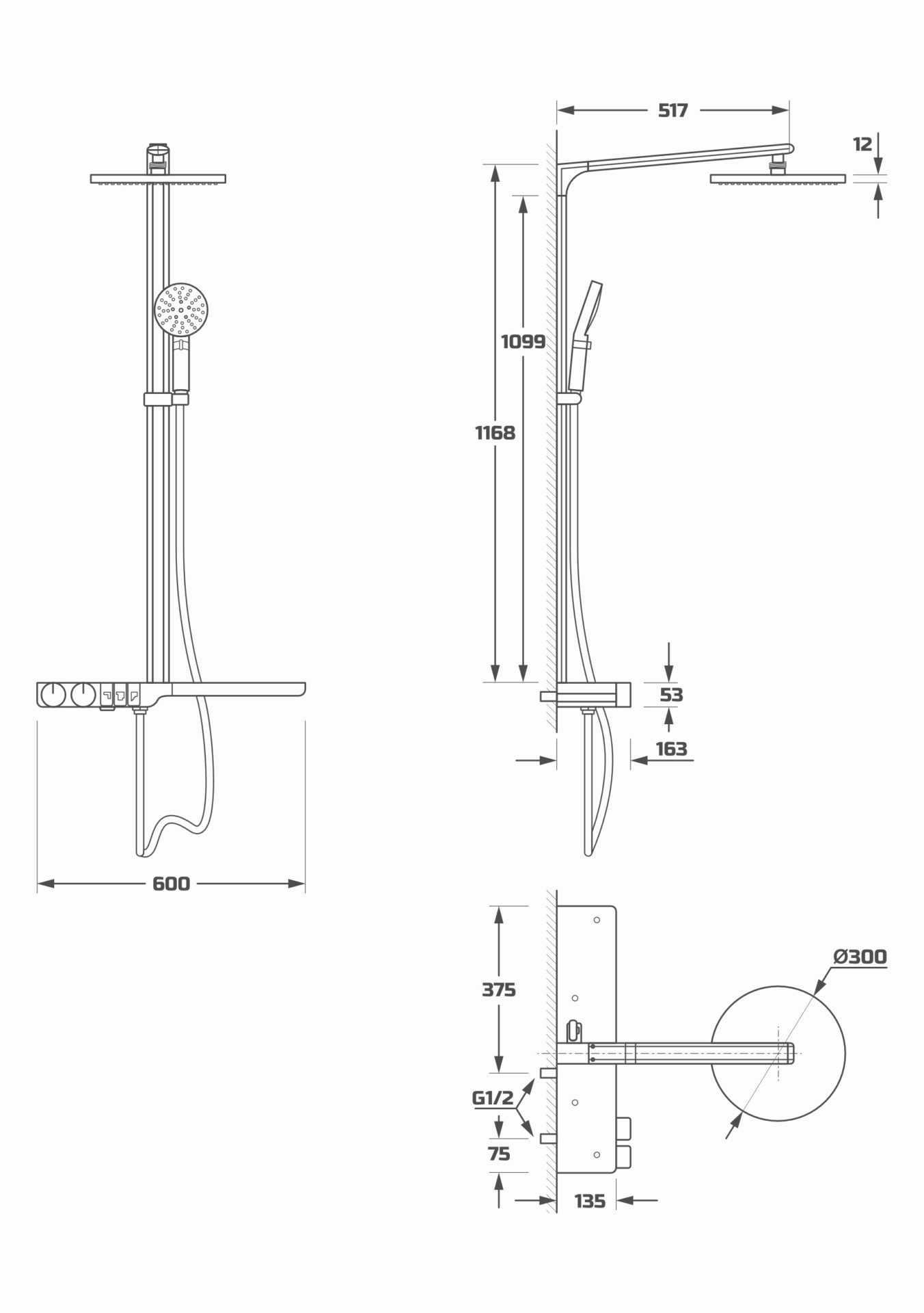 Схема товара Душевая система с термостатом PL24109