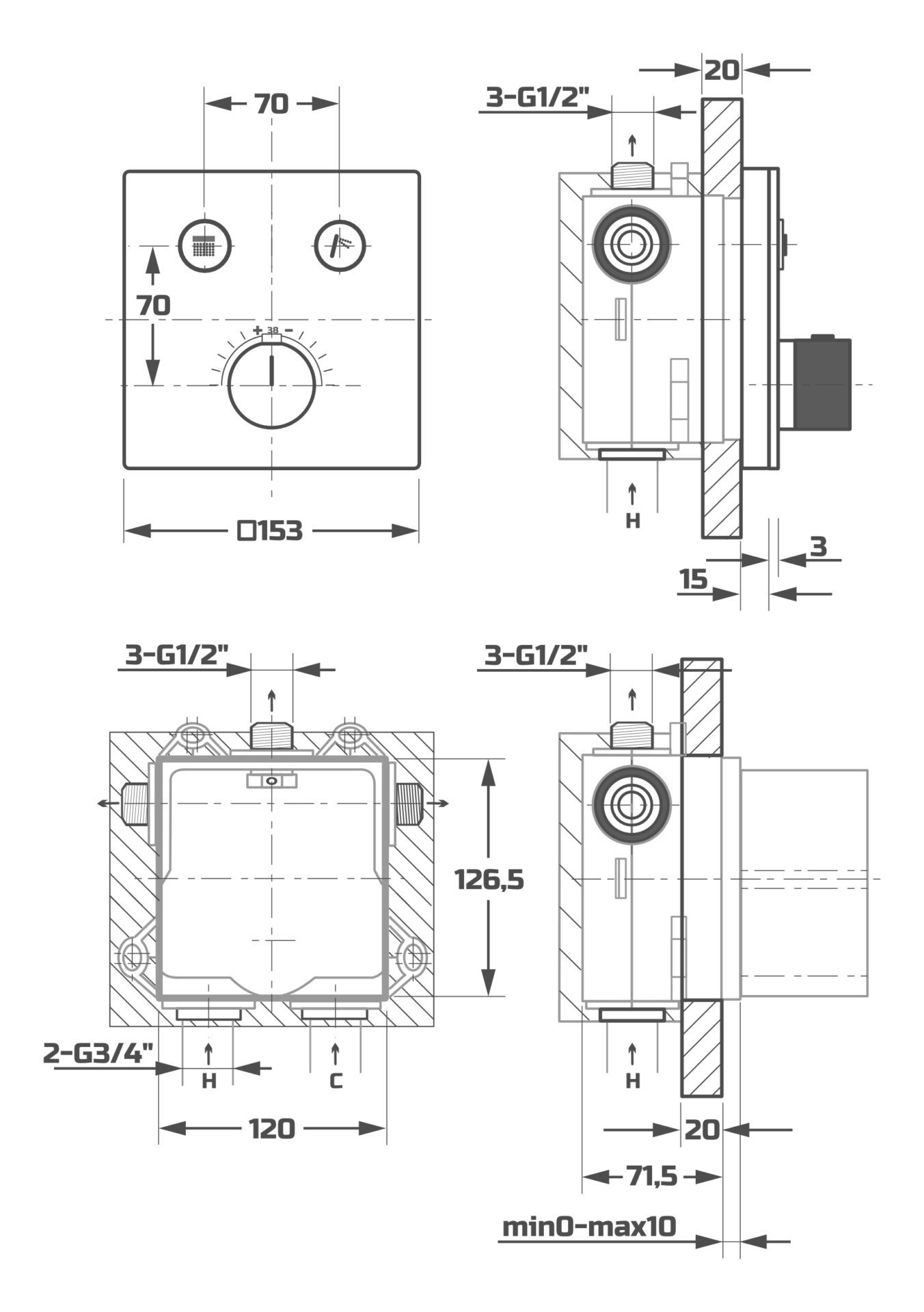 Блок управления встроенной душевой системы PL7498-26