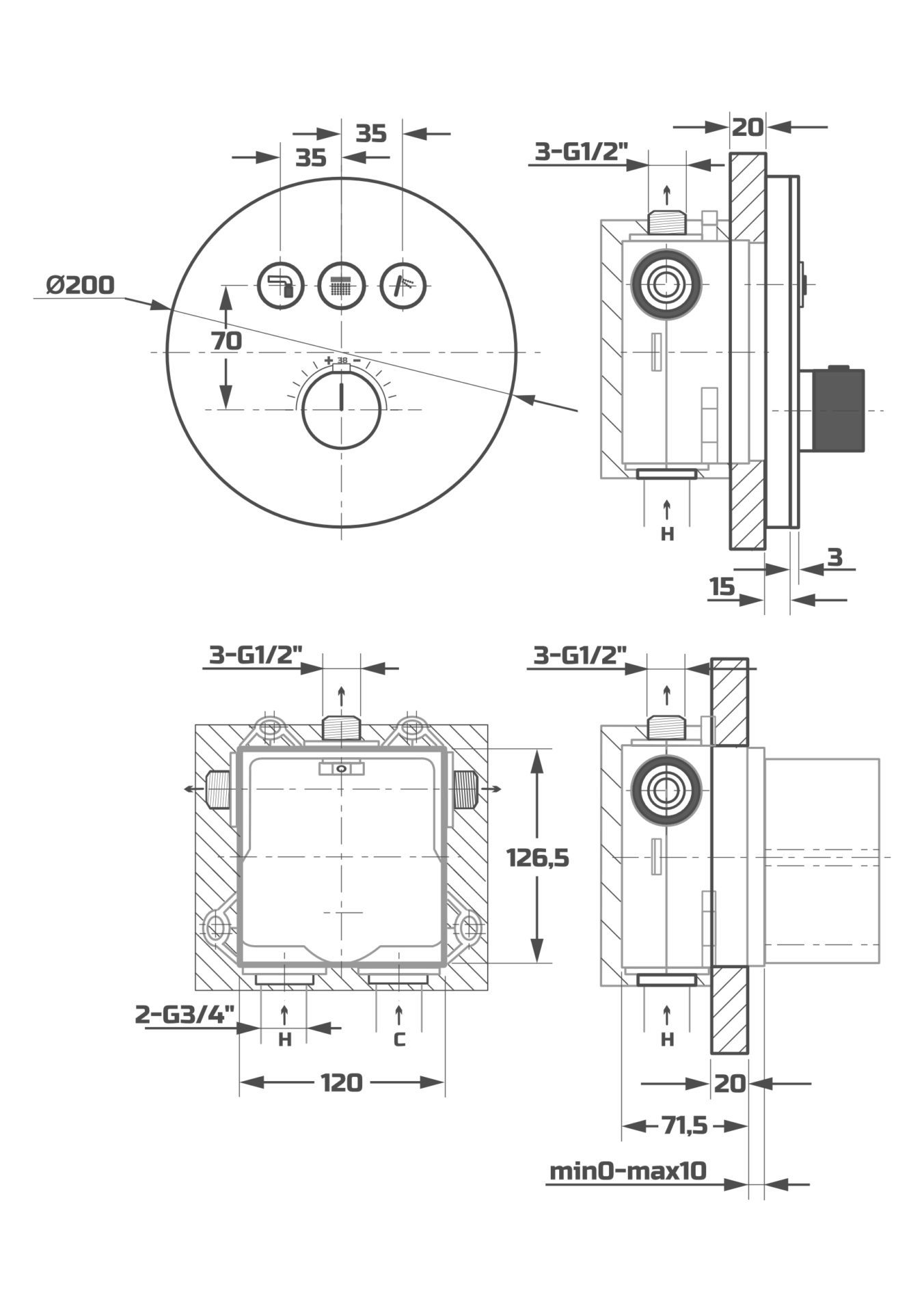 Схема товара Блок управления встроенной душевой системы PL7798-26
