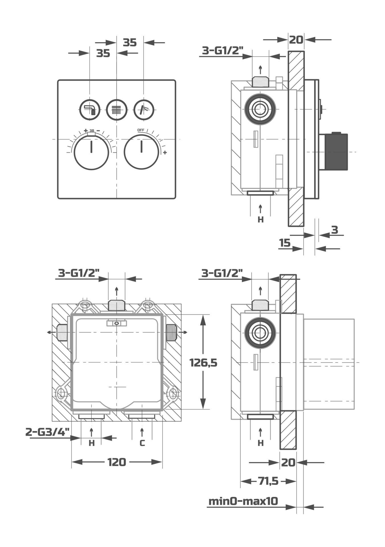 Схема товара Душевая система с термостатом встраиваемая с лицевой панелью PL7999