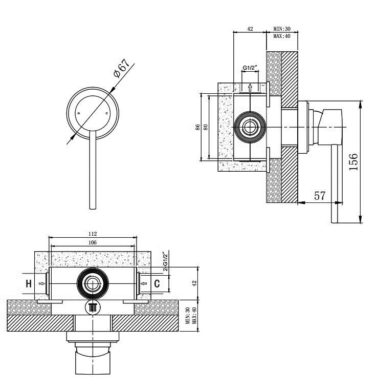 Схема товара Смеситель для душа PL68106