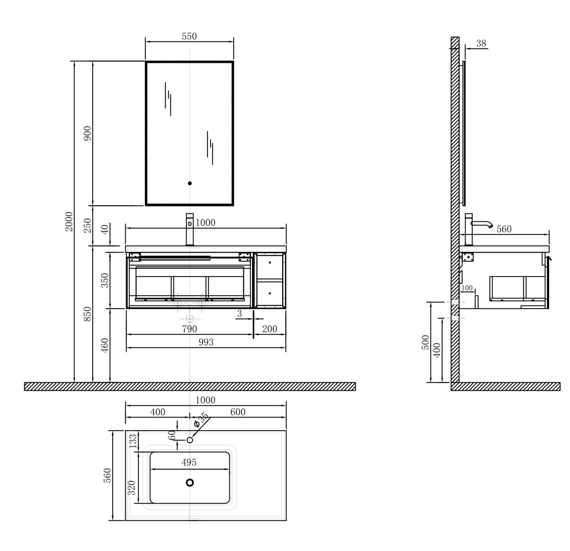 Схема товара Комплект мебели для ванной комнаты ESTRELLA-1000