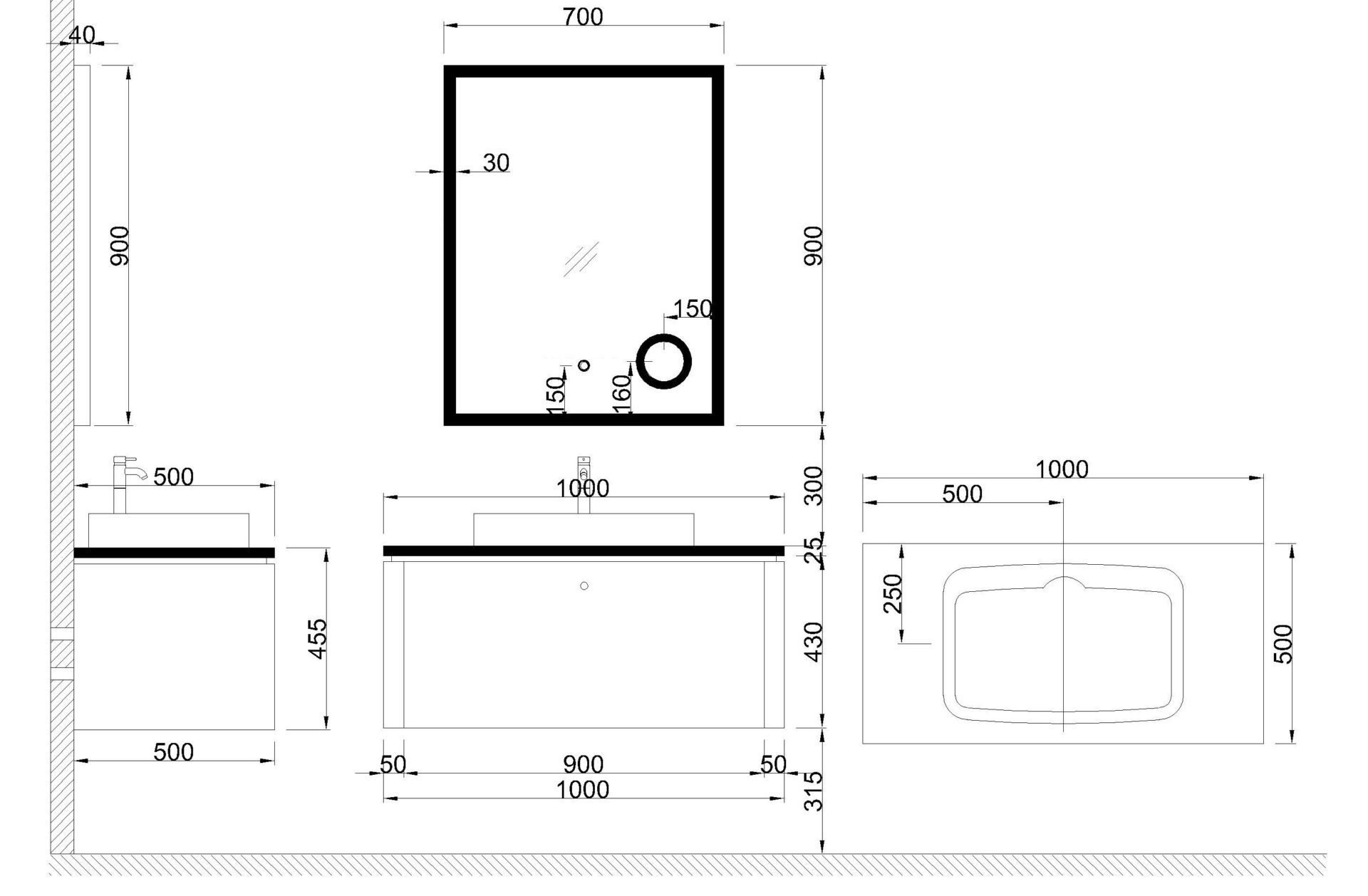 Схема товара Комплект мебели для ванной комнаты NOCHE-1200