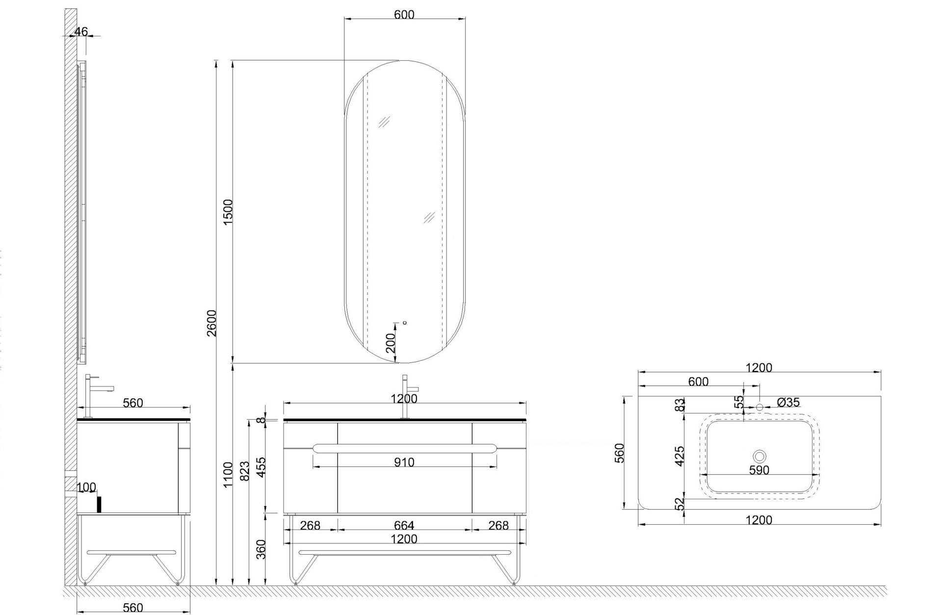 Схема товара Комплект мебели для ванной комнаты PEARL-1200
