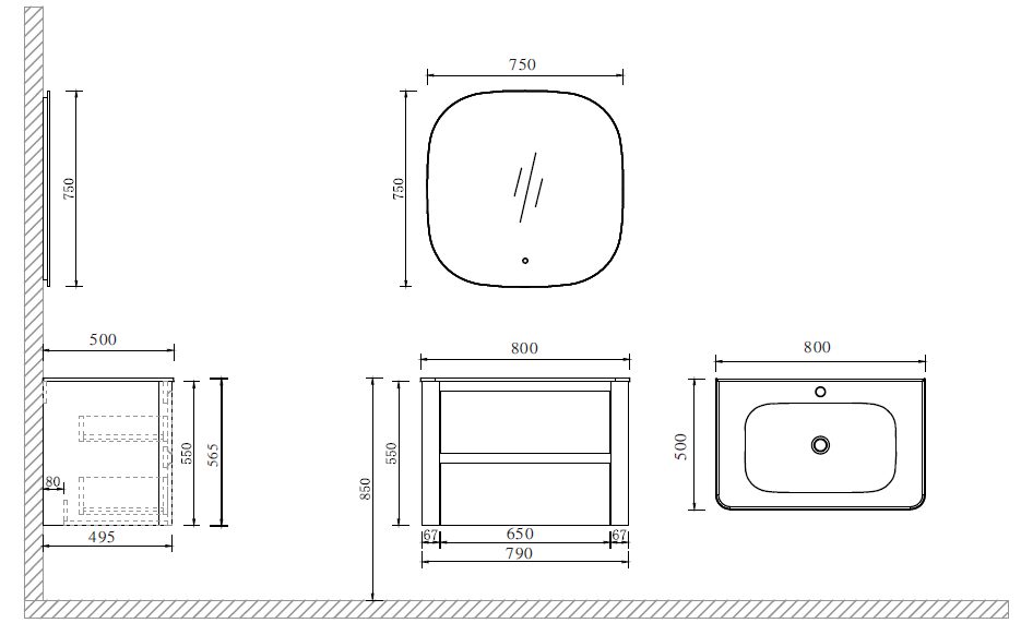 Схема товара Комплект мебели для ванной комнаты ASOMBRO-100-beige