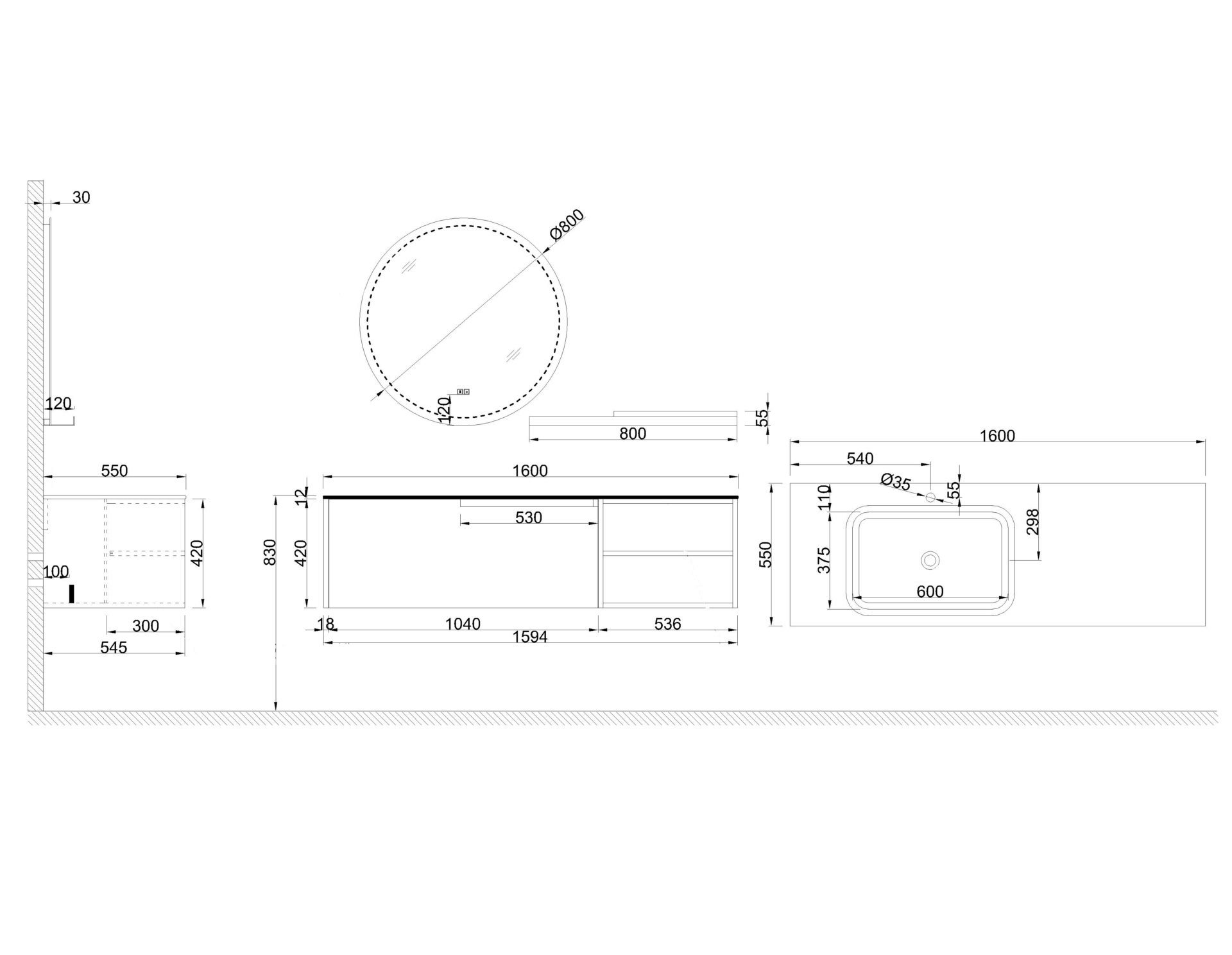 Схема товара Комплект мебели для ванной комнаты CITRINE-100-WH