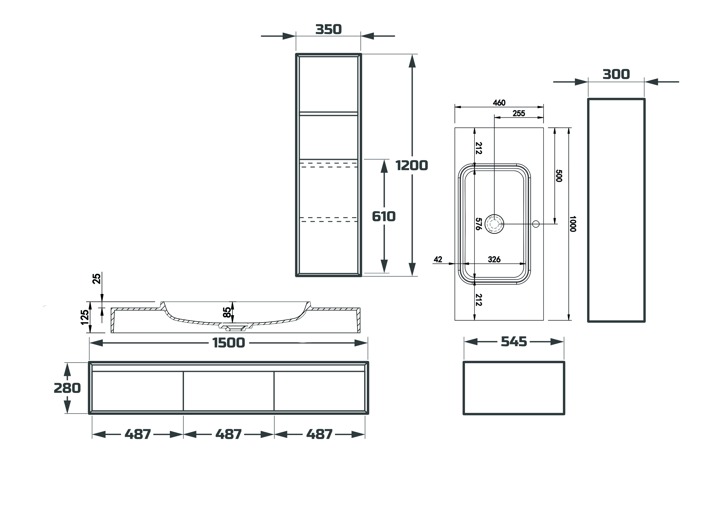 Схема товара Комплект мебели для ванной комнаты ALIENTO-1500-3-DWD