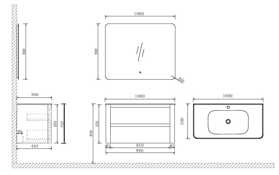 Схема товара Комплект мебели для ванной комнаты ASOMBRO-100-beige