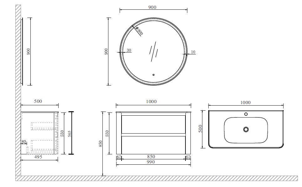Схема товара Комплект мебели для ванной комнаты ASOMBRO-100-beige
