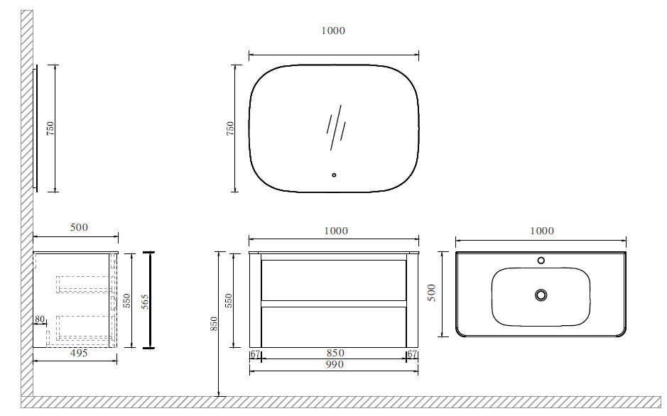 Схема товара Комплект мебели для ванной комнаты ASOMBRO-100-beige