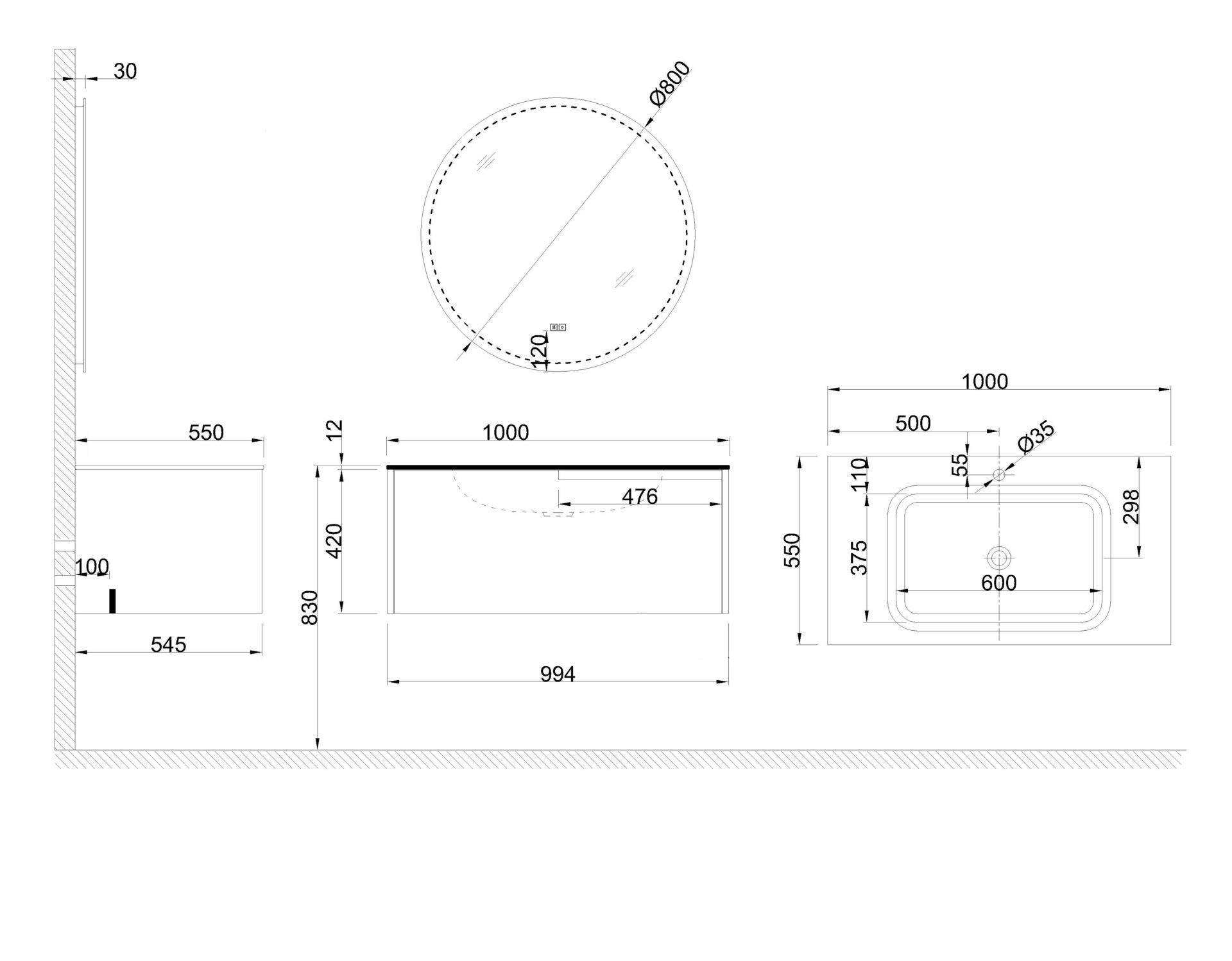 Схема товара Комплект мебели для ванной комнаты CITRINE-100-WH
