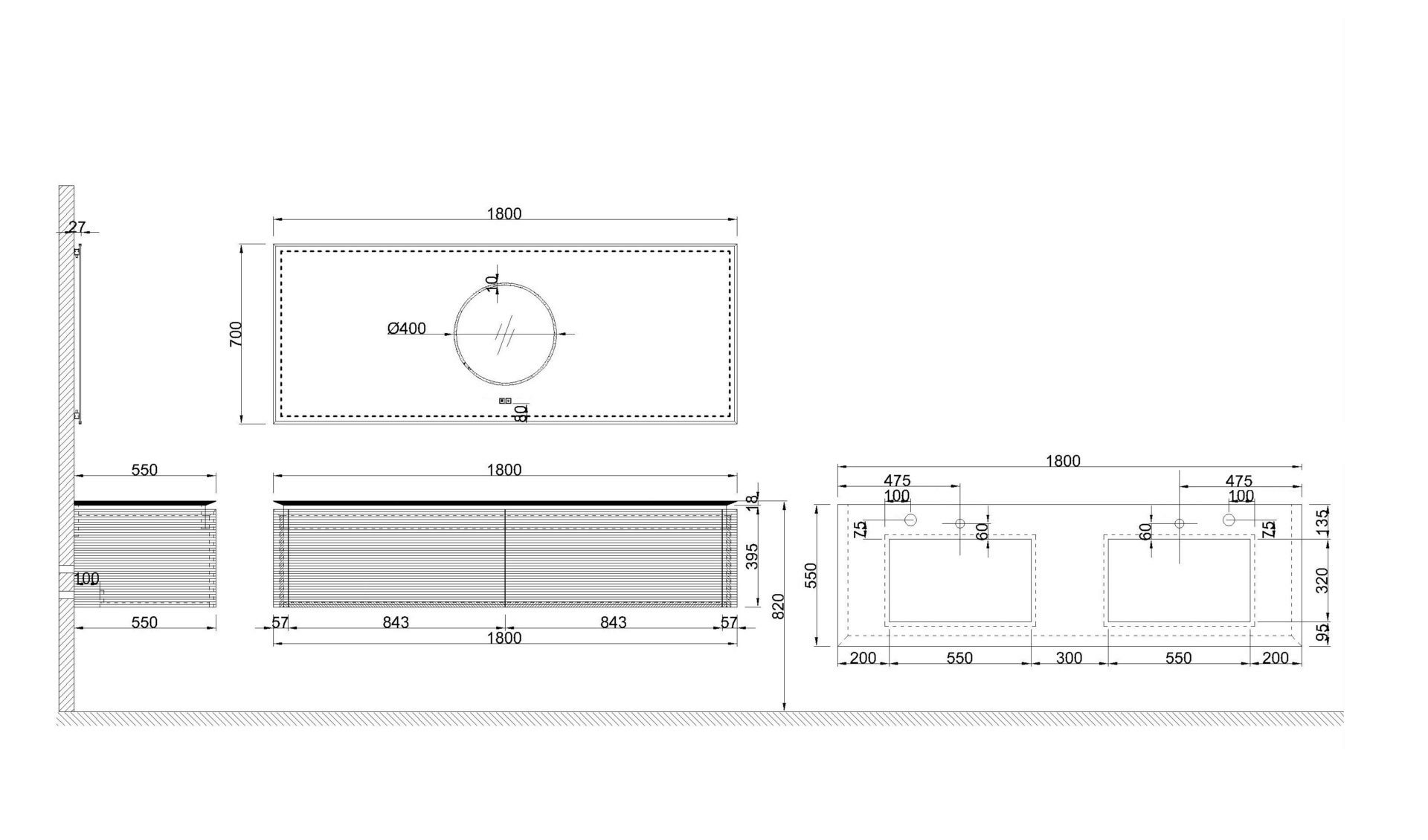 Схема товара Комплект мебели для ванной комнаты JASPER-1000