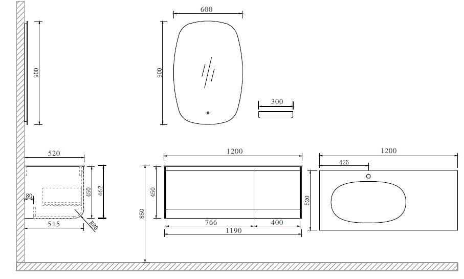 Схема товара Комплект мебели для ванной комнаты MARAVILLA-100-LWD