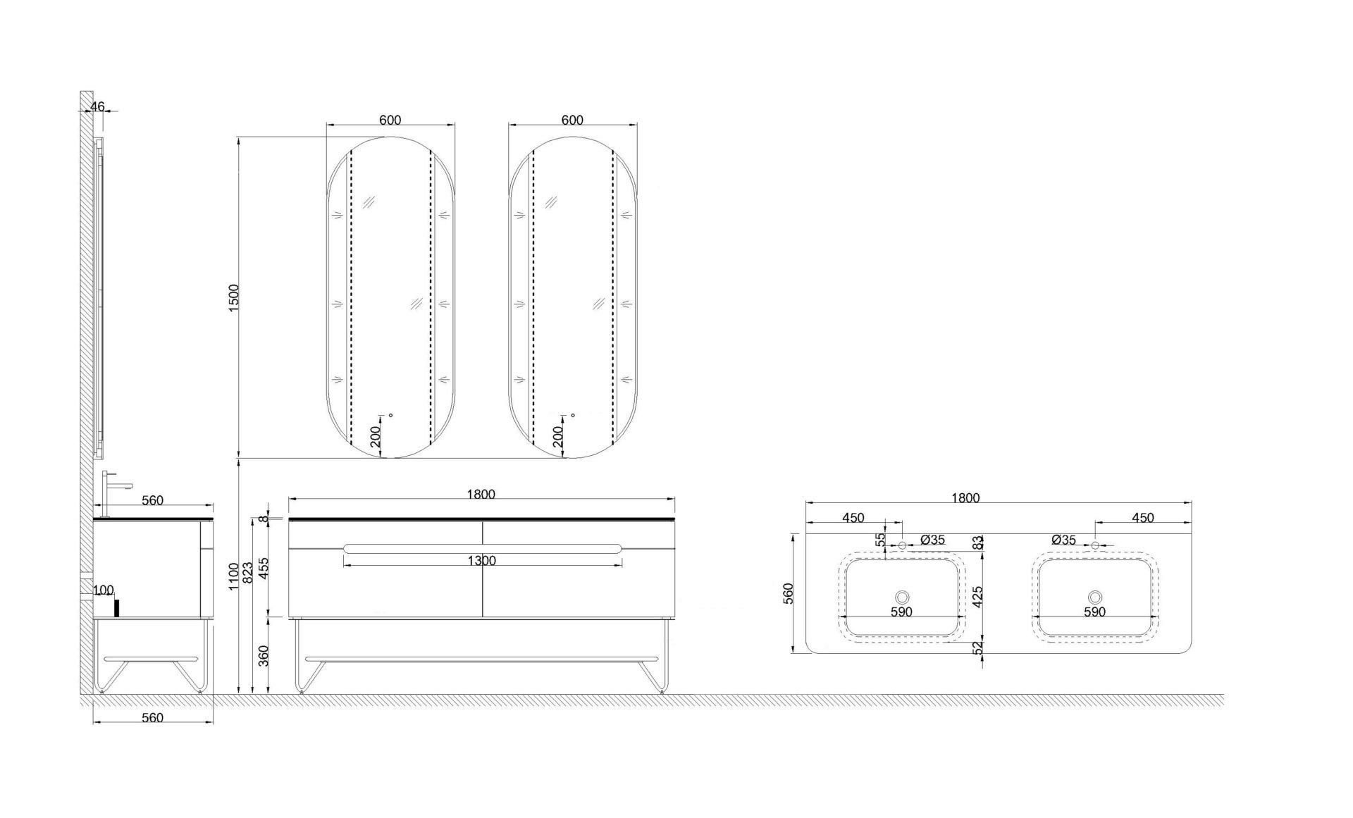Схема товара Комплект мебели для ванной комнаты PEARL-1200