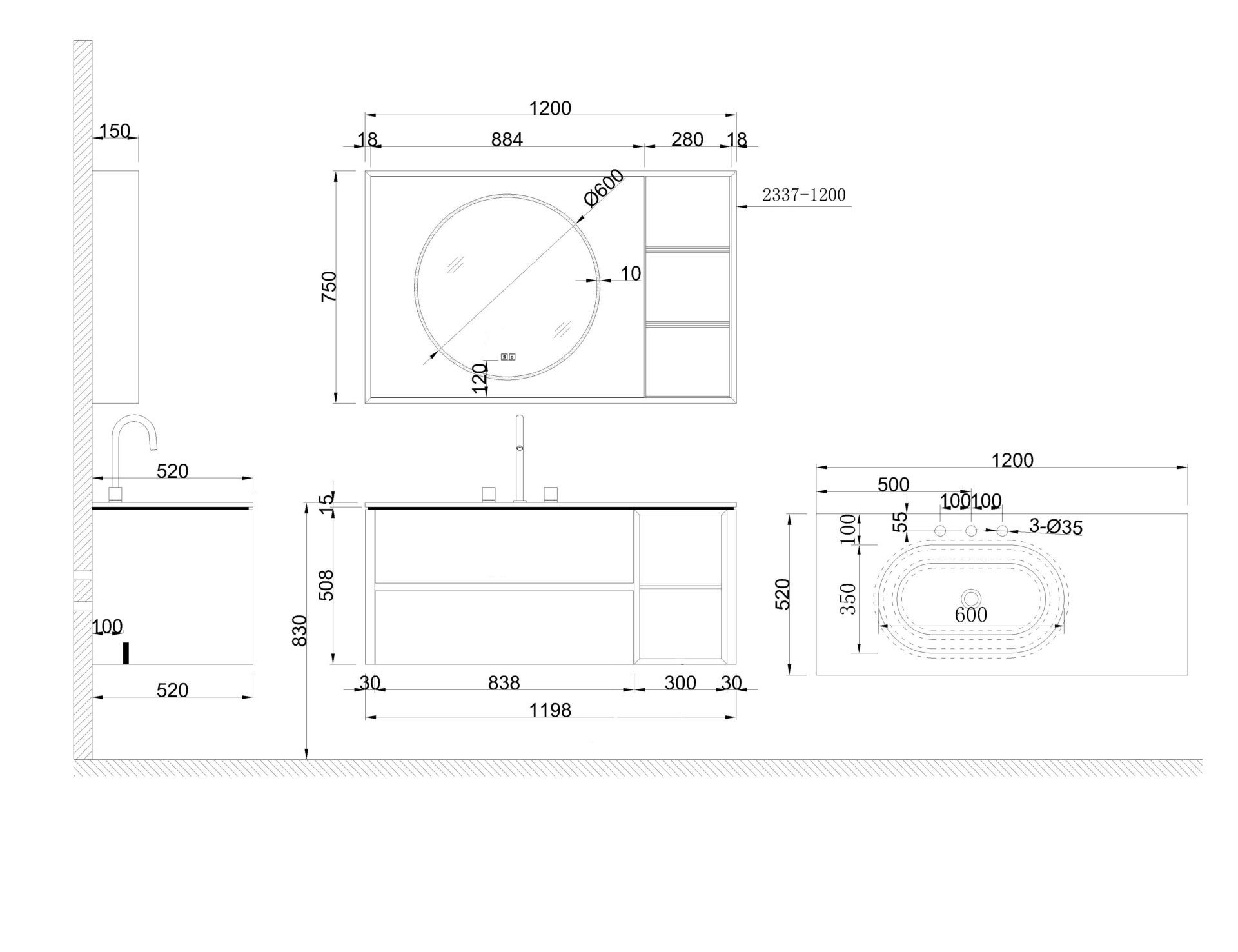 Схема товара Комплект мебели для ванной комнаты PYRITE-120-GN