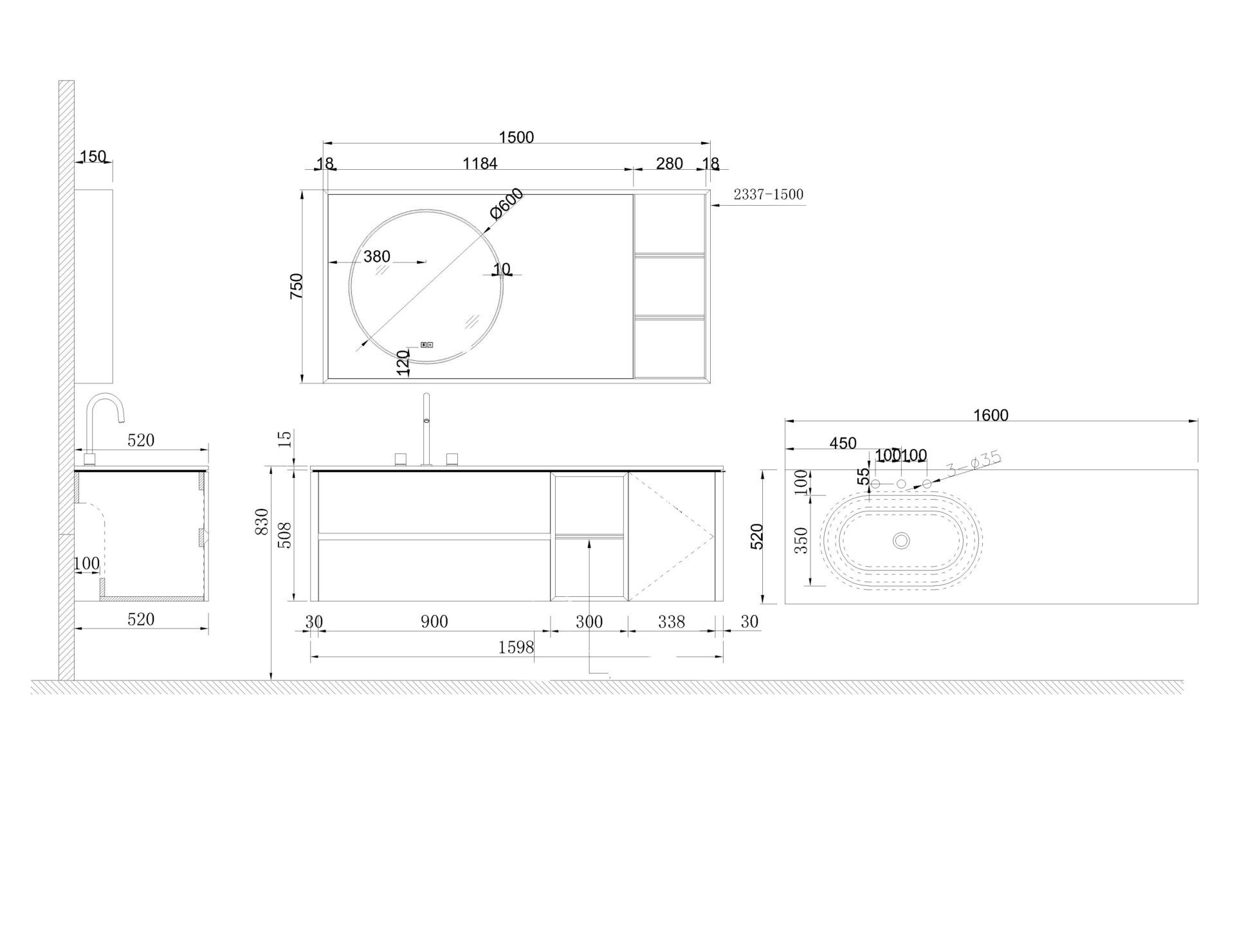 Схема товара Комплект мебели для ванной комнаты PYRITE-120-GN