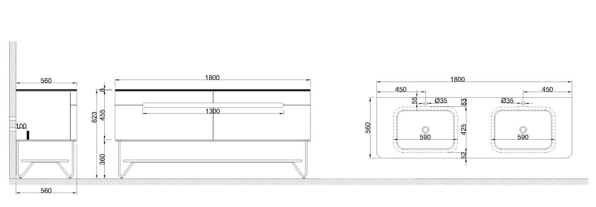 Схема товара Тумба со столешницей PEARL-1200-base