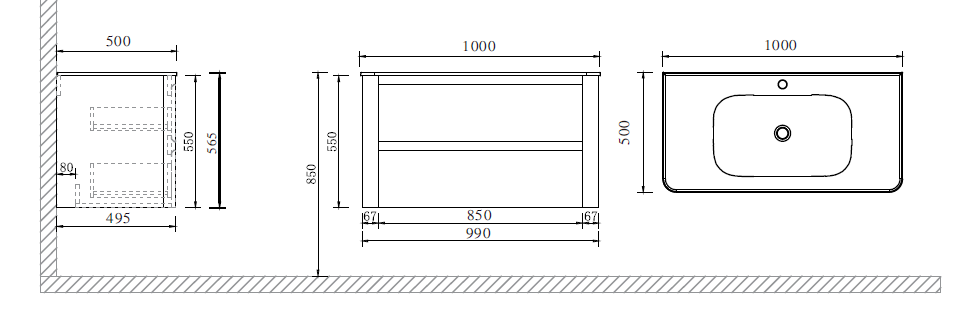 Схема товара Тумба с раковиной PL-MCSK18-100BG