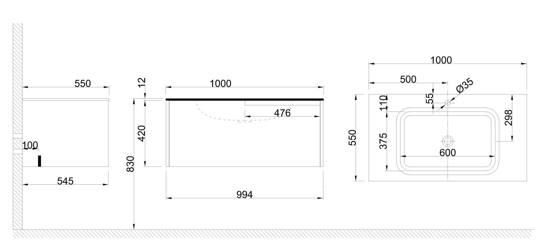 Схема товара Тумба со столешницей CITRINE-100-WH-base