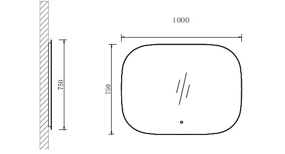 Зеркало в ванную со светодиодной подсветкой с обработанными краями. Сенсорный выключатель, управляется касанием сенсорной кнопки
