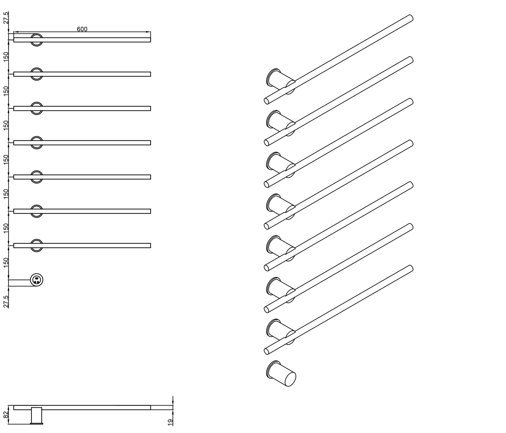Схема товара Полотенцесушитель PL-TRE08BR7-19 (60)