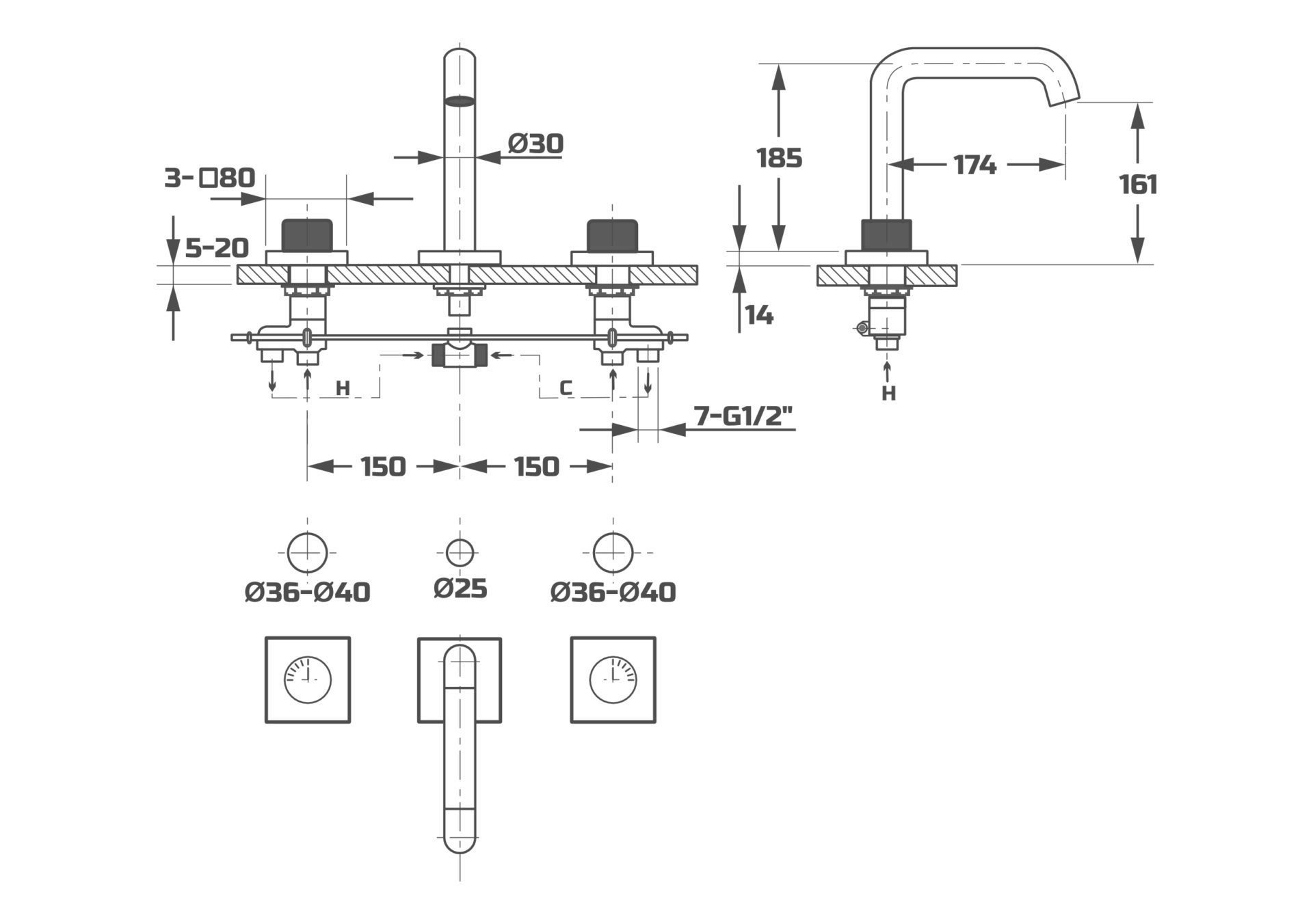 Схема товара Смеситель для раковины встраиваемый PL13101