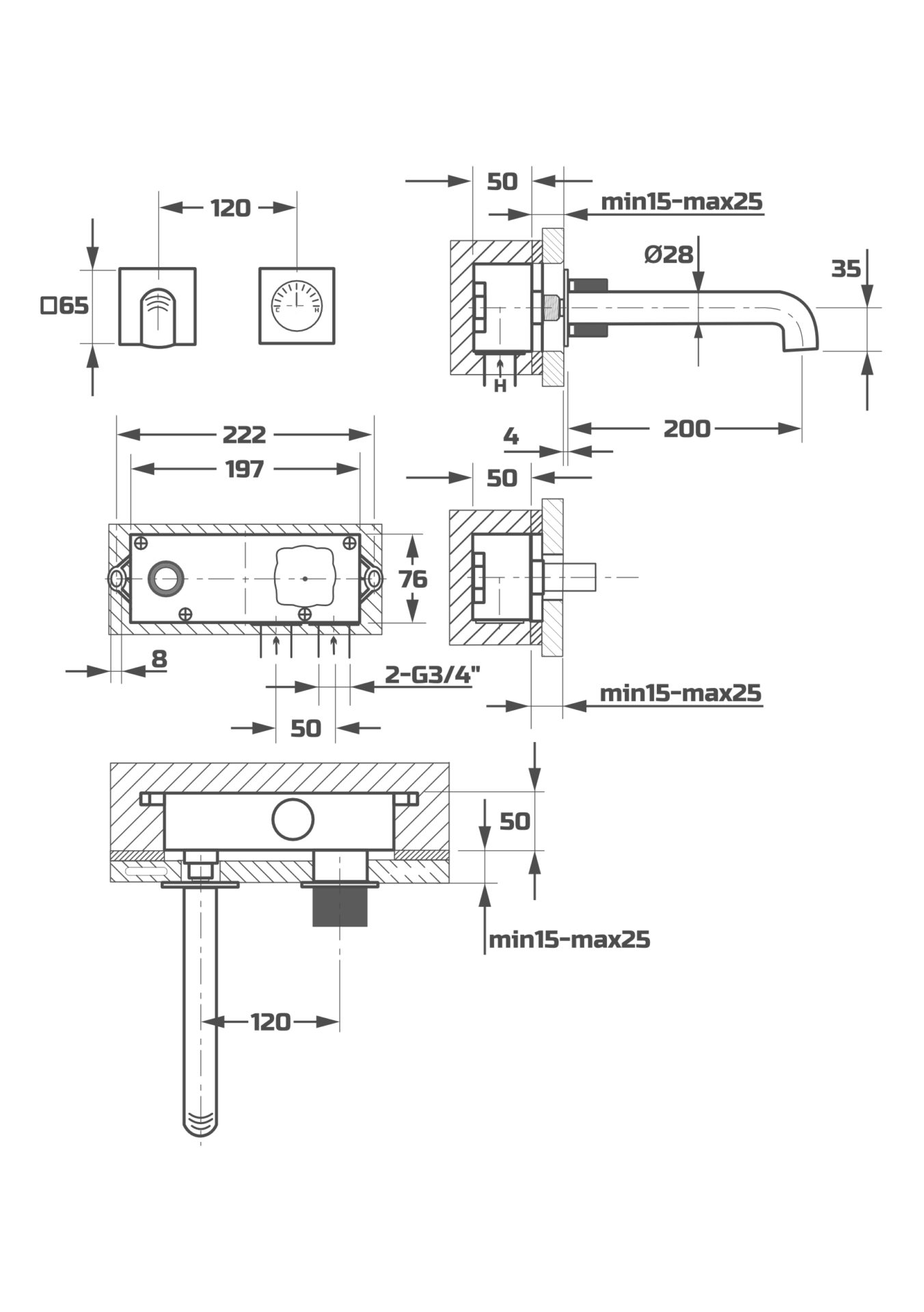 Схема товара Смеситель для раковины встраиваемый PL14103.2