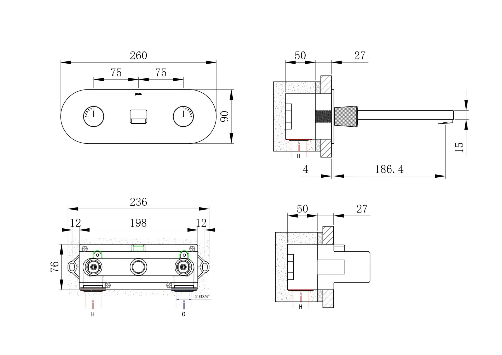 Схема товара Смеситель для раковины встраиваемый PL14107