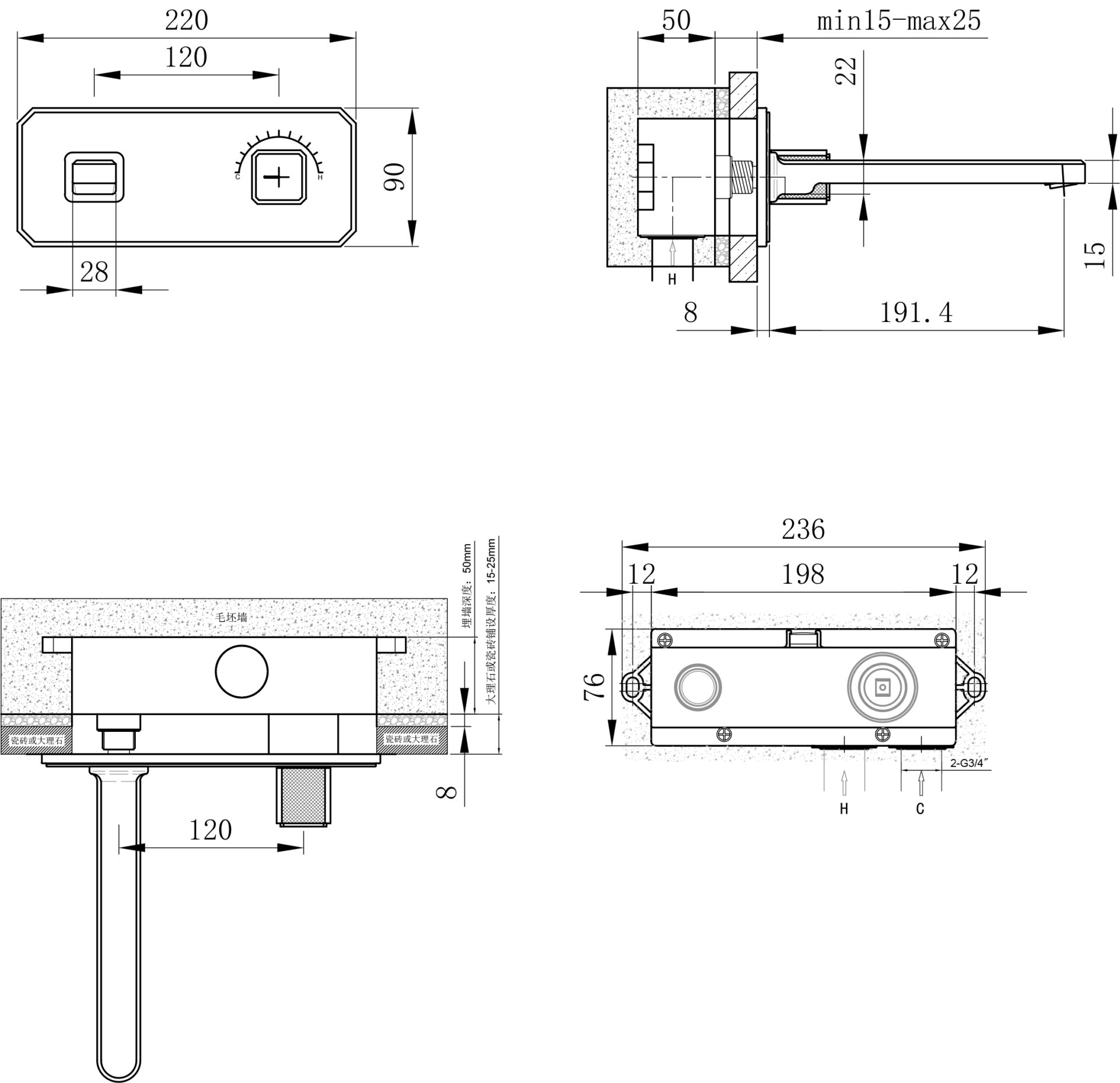 Схема товара Смеситель для раковины встраиваемый PL14109/1-9