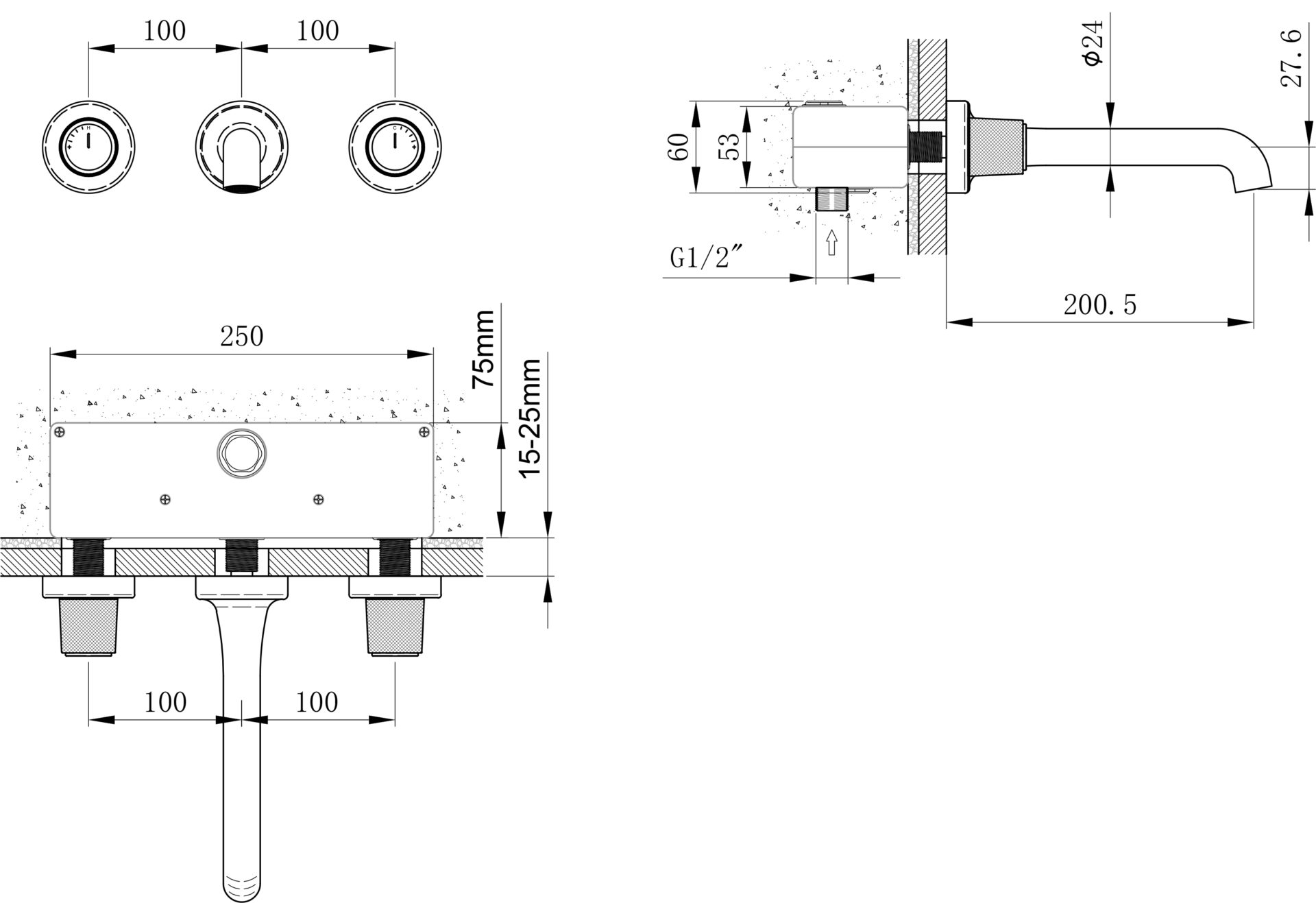 Схема товара Смеситель для раковины встраиваемый PL14112